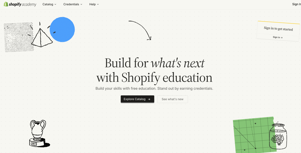 Shopify Academy homepage:
